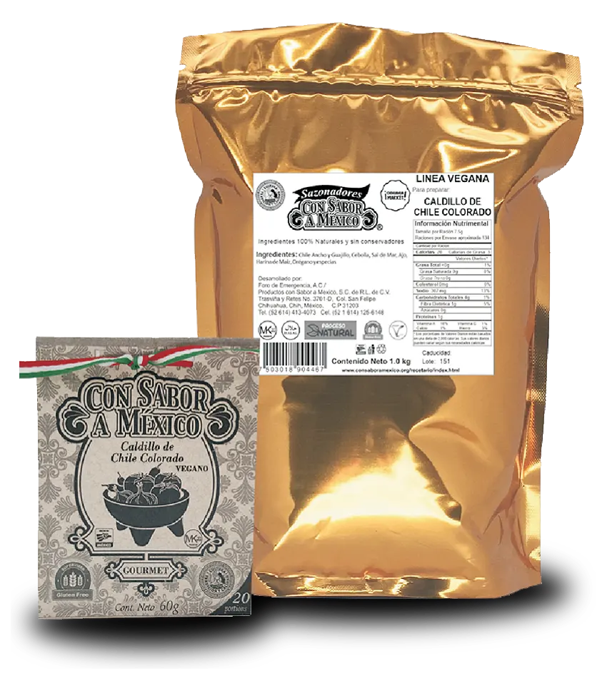Para platillos veganos que desean el verdadero sabor del cadillo de chile colorado.